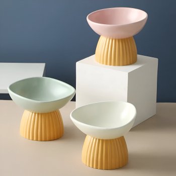 Ceramic Elevated Cat Bowl with Wide-Rim Design for Comfortable Feeding