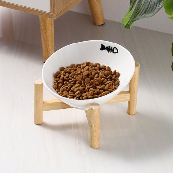 Slanted Ceramic Cat & Dog Bowl with Wooden Frame Pet Feeder