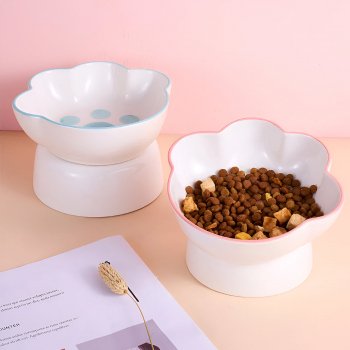 Cute Raised Ceramic Cat & Dog Bowl – High-Base Pet Feeding Dish