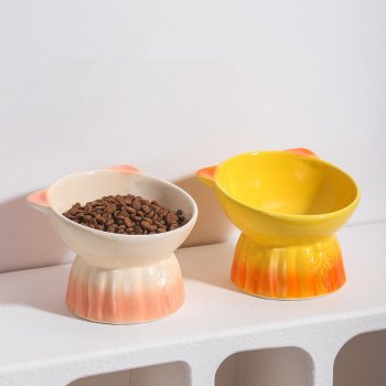 Ceramic Raised Cat & Small Dog Bowl for Cervical Comfort – Cute Cartoon Design